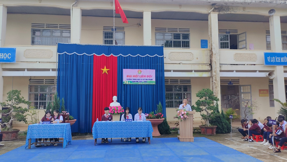 Phát biểu tại Đại hội, thầy Giang Công Biên – Bí thư Chi bộ Hiệu trưởng nhà trường đã ghi nhận những nỗ lực, thành tích mà Liên đội đạt được trong năm học qua; đồng thời định hướng các hoạt động trọng tâm cho năm học 2025 – 2026. Thầy nhấn mạnh tinh thần đoàn kết, sáng tạo và trách nhiệm của đội viên, gắn kết phong trào thiếu nhi nhà trường với những sự kiện chính trị quan trọng của địa phương, đặc biệt ra sức thi đua Chào mừng Đại hội đại biểu Đảng bộ tỉnh Lâm Đồng lần thứ I, nhiệm kỳ 2025 – 2030, dấu mốc mở ra giai đoạn phát triển mới cho toàn tỉnh.